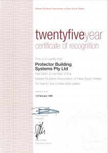 PBS has a been in the Master Builder Association of New South Wales for twenty-five consecutive years